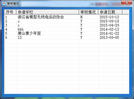 1.2 查看审核情况:当学校用户在申请成功后,需由竞赛组委会审核通过后,才能登录,在申请过后可查看当前的审核记录。