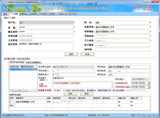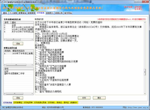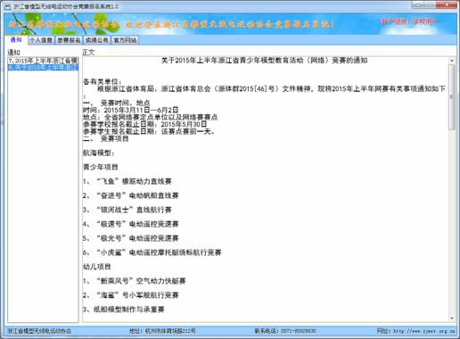 至此浙江省模型无线电运动协会竞赛报名系统,已全部讲解完毕,如还有问题,请致电协会电话:0571-85828830 或 18967113973 QQ:125801575郭老师。