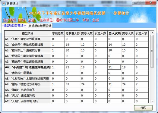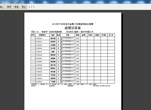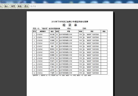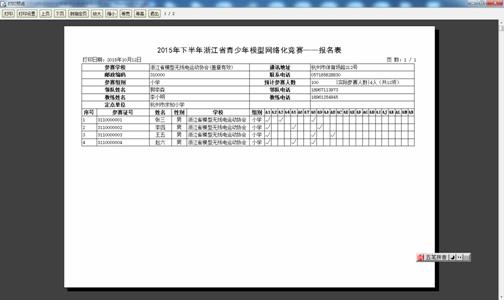 2.5、打印报名表:当报名数据确认后,需打印报名表,并在加盖学校公章及上级部门公章后上交竞赛组委会备份。(提示:打印时可打印两份,以备以后确认。)如下图,在点击“打印”后的打印效果。