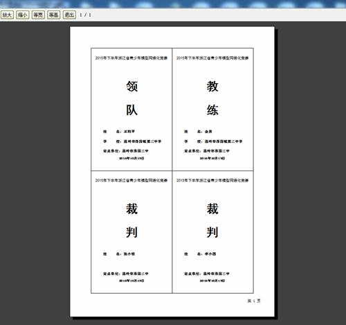 1.4定点单位打印“秩序册、参赛证、检录单、成绩记录单、领队裁判证”